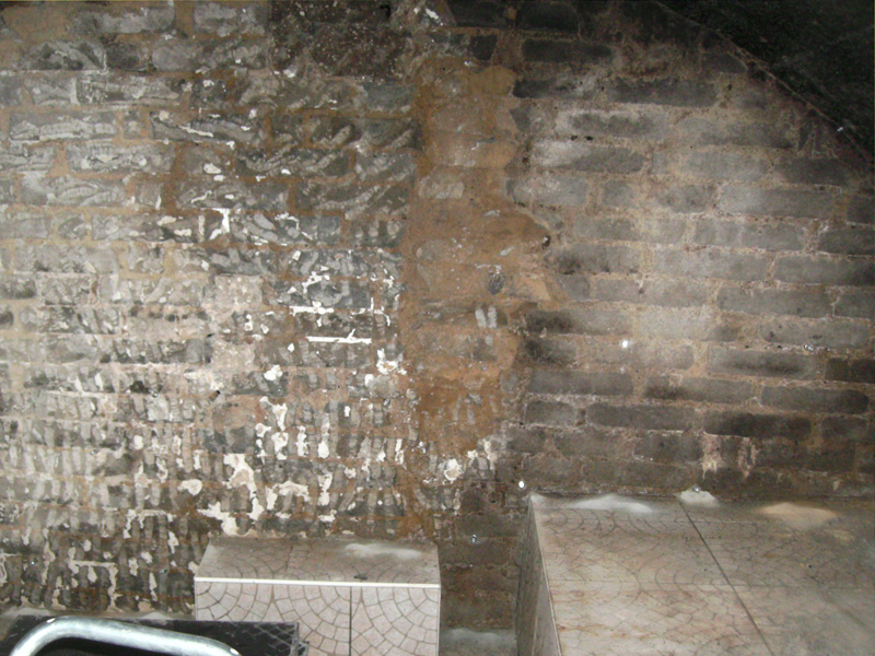 Verpressung gegen Feuchtigkeit und fließendes Wasser in einem Gewölbekeller aus dem Jahr 1845.