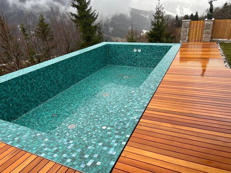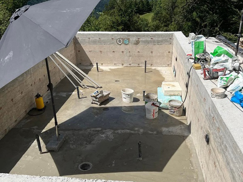 In the vicinity of Kranjska Gora, a swimming pool needed to be restored and waterproofed. First, it was necessary to repair the concrete shell of the pool and to successfully seal all penetrations and details in the pool. This was followed by waterproofing the entire pool. As a final finish, a mosaic tiles for pools were laid.